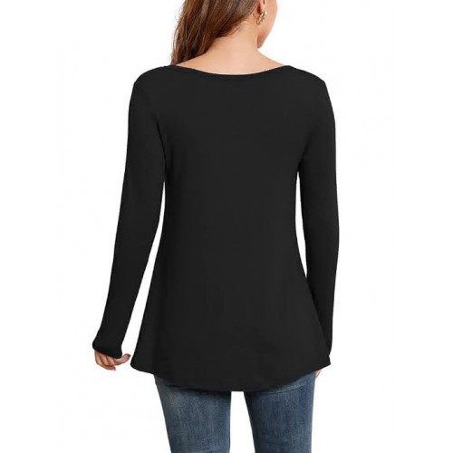 01 Black Womens Summer Short Sleeve Tunic Tops Loose Fit Casual T-Shirt Button Up Blouses