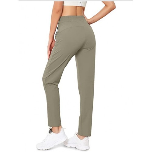 08 Bean Green Women's Quick Dry Hiking Lightweight Joggers Pants Water Resistant Athletic Lounge Track Pants with Zipper Pockets