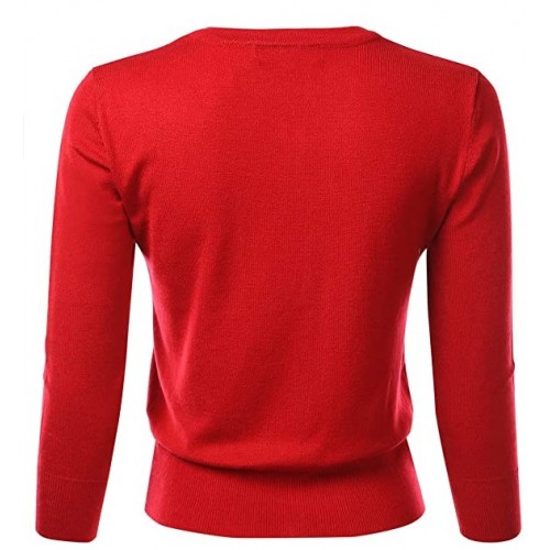 Women's Crew Neck Button Down 3/4 Sleeve Stretchy Knit Cardigan Sweater (S-L)