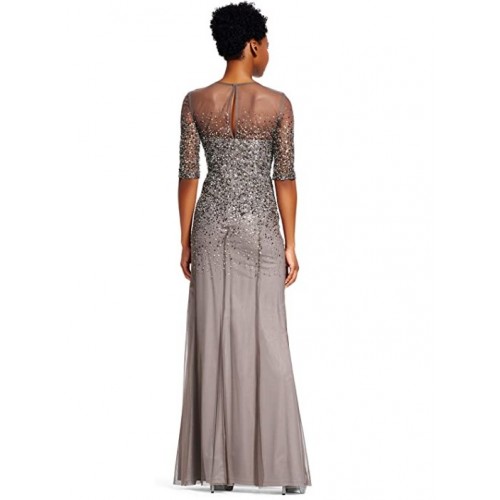 • This stunning sequin dress features a crew neck with sheer, illusion detail, and semi-sheer short sleeves adorned with beautiful beading and sequins